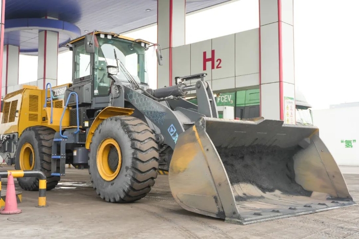 徐工氫能電動裝載機(jī),以氫氣作為動力能源,在燃料電池系統(tǒng)與氧氣發(fā)生化學(xué)反應(yīng)產(chǎn)生電流,產(chǎn)物僅有電、熱量與水,有效減少燃油造成的空氣污染等問題,實現(xiàn)零碳排放。
