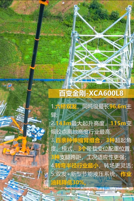 徐工“百變金剛”XCA600L8助力湖北送變電工程項目