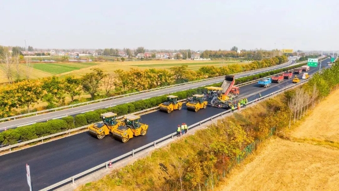 相對普通公路而言,高速公路作為高等級路面,在各項指標上都有著更為嚴苛的施工要求。且此次高速公路改擴建工程為半封閉施工,連霍高速又是貫穿中國東西走向的交通要道,考慮到交通壓力和行車安全性,施工方選擇了徐工成套道路機械作為本路段瀝青攤鋪工程的主力軍,憑借超高的施工效率和完善的防撞系統(tǒng),保證施工安全性的同時,大大縮短了工期,推動該路段快速實現(xiàn)通車。