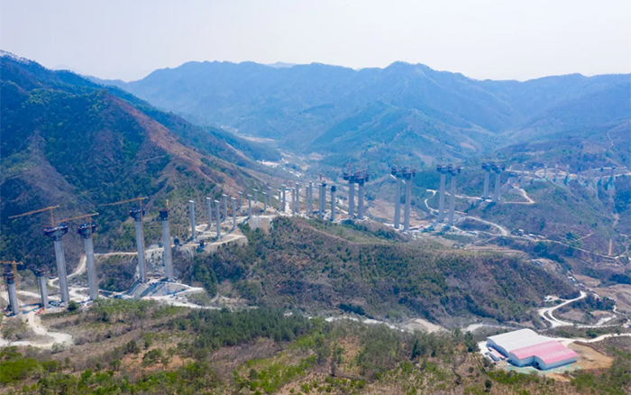 樂望高速是黔桂兩地便捷連通的重要省際通道,主線橋隧比達(dá)78%,是目前廣西橋隧比最高的高速公路。雅長特大橋作為樂望高速控制性工程之一,全長2312米,主橋主墩最大高度155米,為廣西第一高墩。