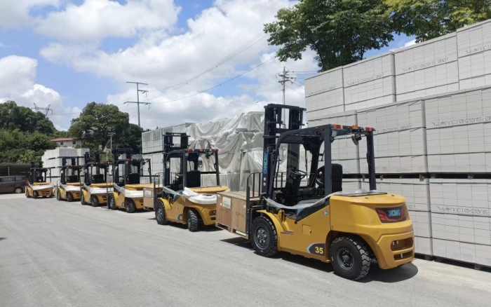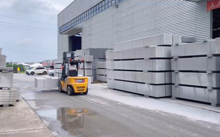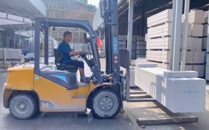 湖南某石材廠內(nèi),徐工叉車新 E 系列電動(dòng)平衡重叉車,耀世登場!