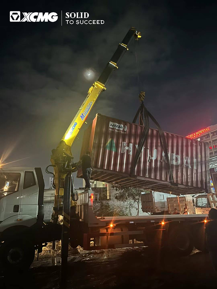 徐工隨車起重機(jī)采用了先進(jìn)的液壓系統(tǒng)與操控技術(shù),具備了高效、穩(wěn)定的工作性能。在集裝箱吊裝轉(zhuǎn)運(yùn)過(guò)程中,起重機(jī)憑借強(qiáng)大的起重能力與卓越的穩(wěn)定性,能夠在狹小或復(fù)雜的空間內(nèi)進(jìn)行精確吊裝。