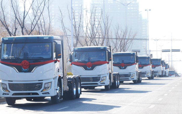 “我宣布,徐工新能源牽引車百臺交付暨千臺簽約儀式圓滿禮成,發(fā)車!”徐工集團副總經(jīng)理,徐工汽車總經(jīng)理、黨委書記夏泳泳一聲令下,百臺徐工新能源牽引車隊列整齊、邁步向前,為更多區(qū)域“雙碳”目標實現(xiàn)作出更大貢獻。