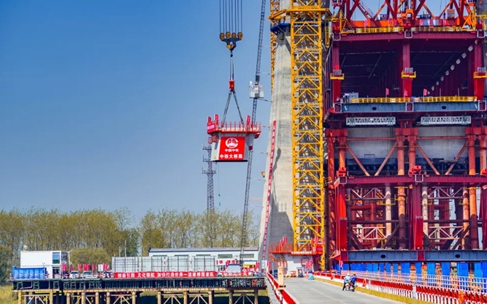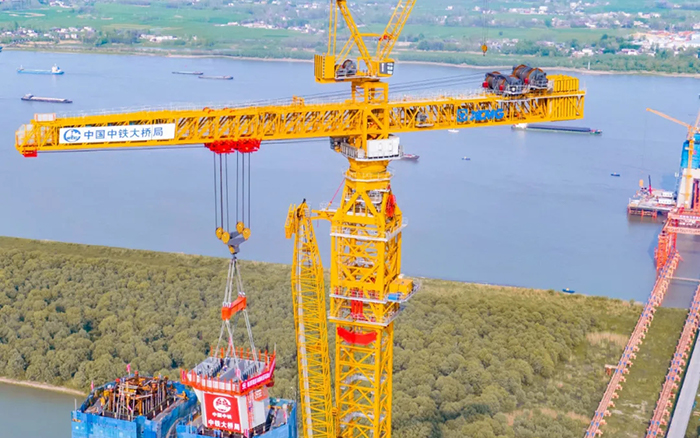 超級裝備賦能超級工程。4月10日,巢馬城際鐵路馬鞍山公鐵兩用長江大橋項目建設迎來重要節(jié)點,全球最大塔機徐工XGT15000-600S順利完成首節(jié)段鋼塔吊裝,大橋進入到上塔柱的施工階段。