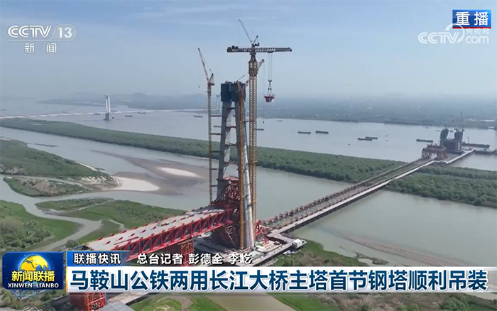 首節(jié)鋼塔吊裝過程獲得《新聞聯播》《東方時空》《人民日報》《央視新聞》、CCTV4、中國新聞網、新華報業(yè)網、《新民晚報》、安徽網、荊楚網、齊魯網、高鐵網、《馬鞍山日報》等多家央省級主流媒體集中跟進報道,引起廣泛關注。