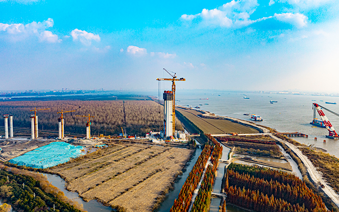 張靖皋長江大橋主跨為2300米,索塔高度為350米,擁有跨度、索塔高度、錨碇體積等6個世界第一,是中國橋梁首次突破2000米跨徑標(biāo)志性橋梁。