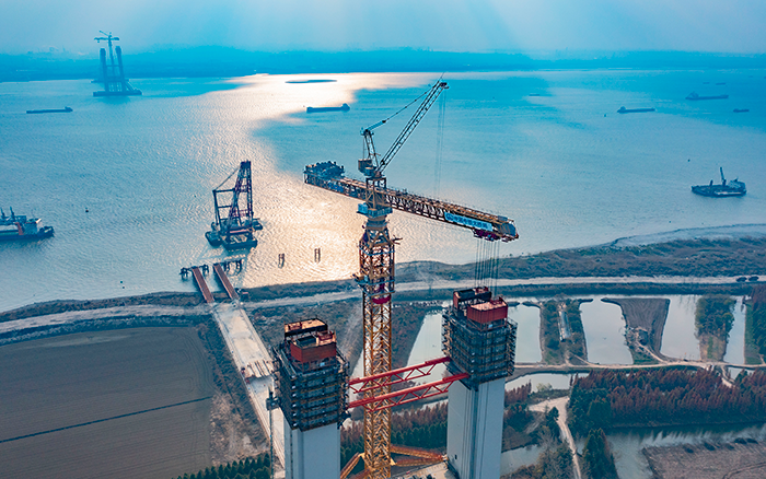 近日,在世界最大跨徑懸索橋--張靖皋長江大橋南航道橋北主塔施工現(xiàn)場,徐工XGT15000-600S超大型塔機如鋼鐵巨人伸展手臂,將重達數(shù)百噸的鋼塔節(jié)段緩緩吊起,“搭積木”般穩(wěn)穩(wěn)放落在塔柱上,贏得施工方“技術(shù)先進、安全可靠、吊裝能力強、操作平穩(wěn)、就位精準(zhǔn)、安拆效率高、智能化水平高、施工效益顯著”的高度肯定。
