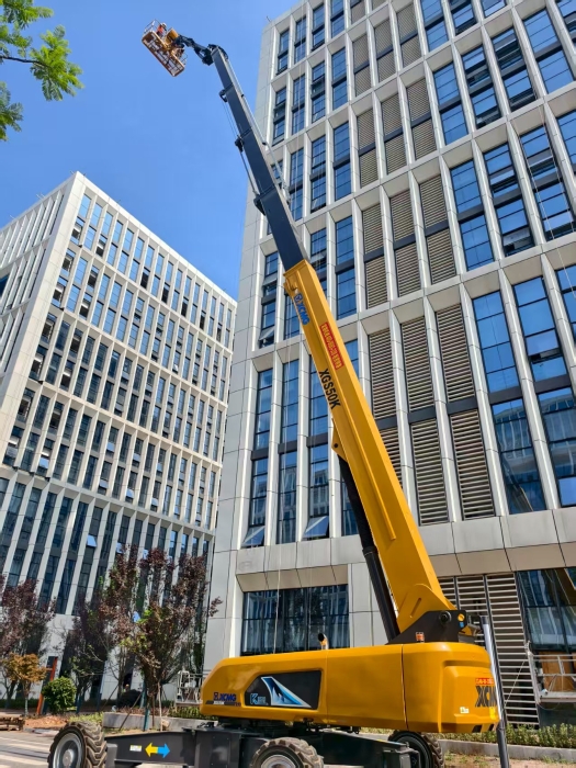 面對產(chǎn)業(yè)園體量龐大、結(jié)構(gòu)復(fù)雜、維護(hù)點分散且高度需求大的挑戰(zhàn),XGS50K憑借其50米的超高作業(yè)高度和強大的跨越能力大顯身手。其靈活伸縮的小飛臂輕松越過設(shè)備管線、通風(fēng)設(shè)施等障礙物,精準(zhǔn)直達(dá)高層幕墻檢修點;超強的平臺承載能力和出色的作業(yè)穩(wěn)定性,為技術(shù)人員在高空進(jìn)行檢測、清潔等精細(xì)操作提供了堅實、安全的保障,顯著提升了維護(hù)效率。
