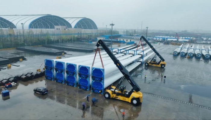 本次交付的國產(chǎn)最大噸位風電正面吊XCS70KS,可實現(xiàn)70噸/4米貨物吊裝,60噸/4米貨物帶載行走作業(yè),雙機可抬吊140噸貨物,大幅提升港口大、重件轉(zhuǎn)運效率。
