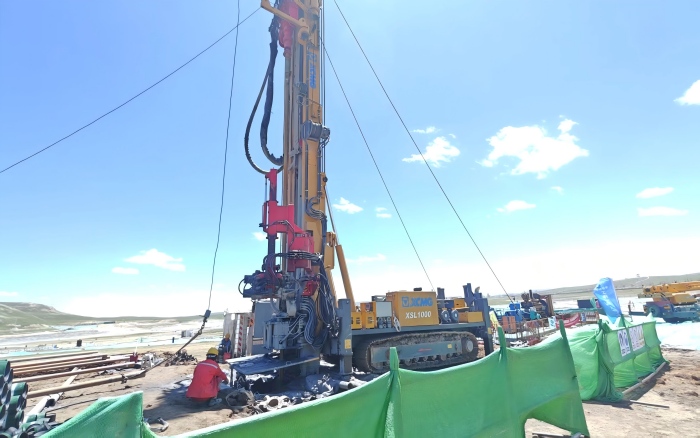 徐工XSL1000履帶式深井鉆機(jī)憑借扭矩大、提升力強(qiáng)、穩(wěn)定性高等核心優(yōu)勢,在高寒低壓環(huán)境中仍保持卓越性能,為全線順利推進(jìn)奠定堅(jiān)實(shí)基礎(chǔ),成為突破施工瓶頸的“關(guān)鍵利器”。