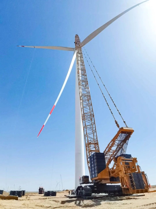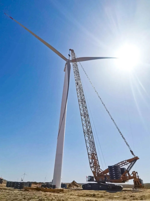 近日,徐工XLC18000M(1300噸級)履帶起重機(jī)在甘肅某風(fēng)電項目現(xiàn)場迎來高光時刻,圓滿完成了20臺風(fēng)機(jī)吊裝,標(biāo)志著該10萬兆瓦風(fēng)電項目取得階段性勝利。