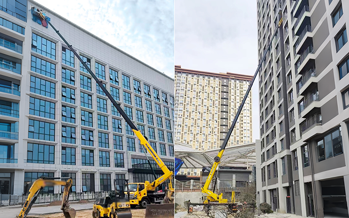 高層樓宇外側(cè)飄窗突出結(jié)構(gòu)密集分布,對(duì)高空作業(yè)的精準(zhǔn)度和靈活性要求極高。傳統(tǒng)設(shè)備因臂架笨重、跨障能力弱,難以精準(zhǔn)抵達(dá)作業(yè)點(diǎn)位,施工進(jìn)度頻頻受阻。而徐工 GKS45A 搭載“基本臂 + 六節(jié)伸縮臂 + 獨(dú)立飛臂” 創(chuàng)新結(jié)構(gòu),緊湊靈動(dòng)的小飛臂如同精準(zhǔn)的 “高空畫筆”,輕松繞開各類障礙物,穩(wěn)穩(wěn)定格每一個(gè)作業(yè)位置,完美匹配新樓施工的嚴(yán)苛需求。