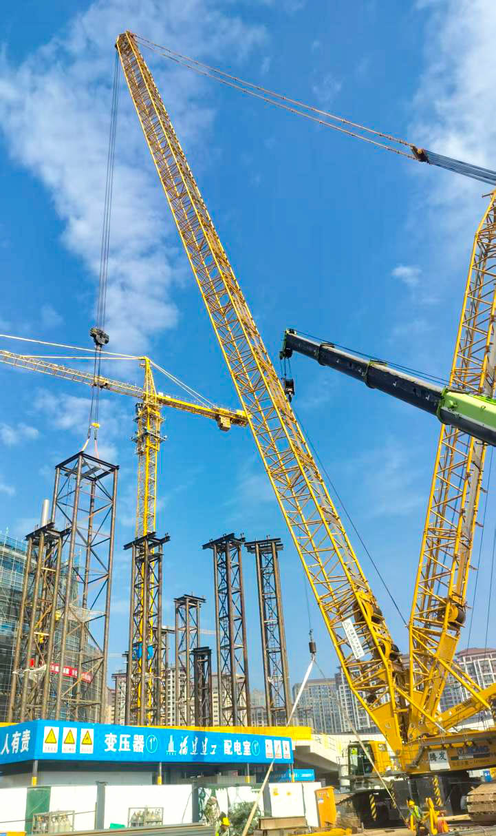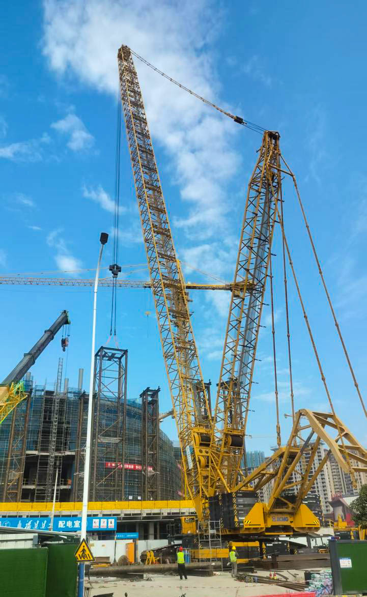 更棘手的是“場(chǎng)地限制關(guān)”:工地緊鄰城市道路和已建成建筑,空間局促,不僅XGC15000A的站位要反復(fù)測(cè)算,還得和多臺(tái)塔吊協(xié)調(diào)作業(yè)范圍,避免“搶空間”的機(jī)械干涉。