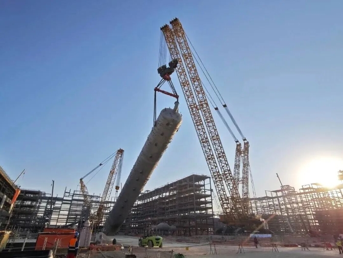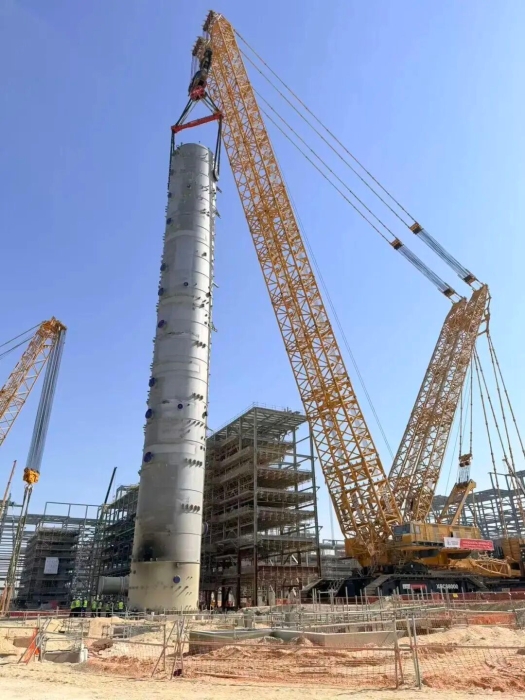 此次吊裝的塔器體積龐大、結(jié)構(gòu)復(fù)雜,加之當(dāng)?shù)仫L(fēng)速多變、沙塵頻發(fā),對(duì)高空作業(yè)的精度與設(shè)備穩(wěn)定性構(gòu)成嚴(yán)峻考驗(yàn)。