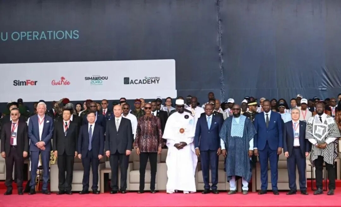 近日,幾內(nèi)亞西芒杜鐵礦投產(chǎn)儀式在馬瑞巴亞港舉行。幾內(nèi)亞總統(tǒng)馬馬迪·敦布亞,習(xí)近平主席特別代表、國務(wù)院副總理劉國中,盧旺達(dá)總統(tǒng)卡加梅,加蓬總統(tǒng)恩圭馬出席投產(chǎn)儀式。