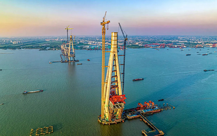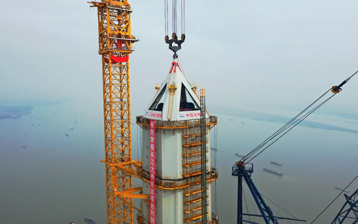 常泰長江大橋集高速公路、城際鐵路、普通公路“三位一體”,是世界上最大跨度的斜拉橋,主塔設(shè)計(jì)總高350米,對服務(wù)“長江經(jīng)濟(jì)帶”建設(shè)、長三角一體化發(fā)展等國家重大戰(zhàn)略具有重要意義。