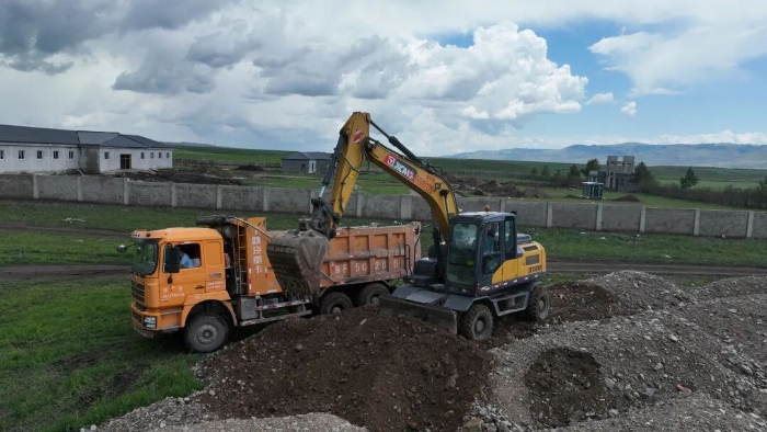在被譽(yù)為“塞上江南”的西北地區(qū),王老板的事業(yè)迎來了“第二春”。他擁有的多臺(tái)徐工輪挖設(shè)備,活躍于各類綠化、修路及管網(wǎng)改造工程。王老板特別贊賞設(shè)備的靈活性:“輪挖(在這里)活多,它轉(zhuǎn)場方便?!逼渑鋫涞目鞊Q裝置更能快速切換不同屬具,靈活滿足多樣化施工需求。在海拔兩三千米的高原草場,徐工XE150WD參與著歷史悠久的馬場建設(shè),進(jìn)行土石方開挖、回填與整平作業(yè)。雨季來臨時(shí),泥濘的草原常使運(yùn)輸車輛陷入困境,此時(shí)輪挖便化身搶險(xiǎn)“特種兵”,保障工程順利推進(jìn)。