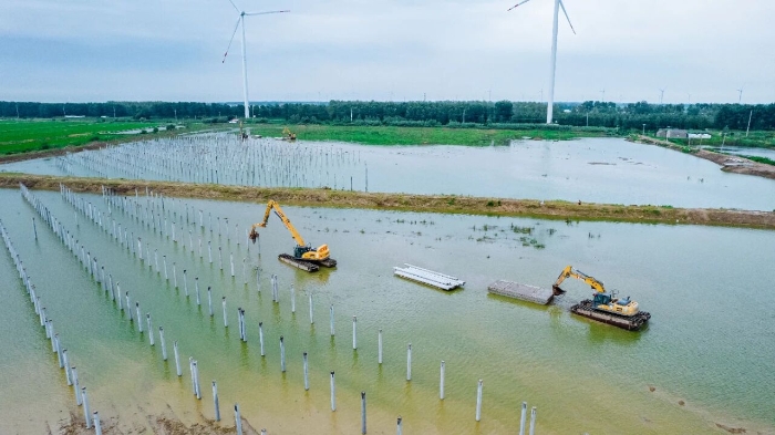 徐工水上打樁機助力“漁光互補”項目