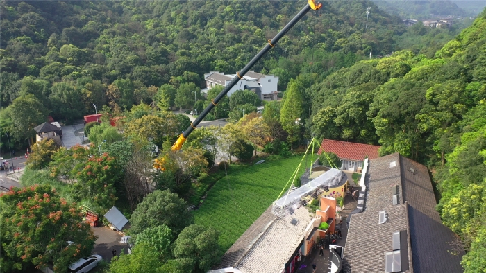 此次影視燈架的吊裝,對(duì)于身懷絕技的XCT130G8-1來(lái)說(shuō),更像是一次從容的“小試牛刀”。設(shè)備前一天抵達(dá),第二天即刻投入實(shí)戰(zhàn)。此次任務(wù)要求將燈架長(zhǎng)時(shí)間懸停,設(shè)備的穩(wěn)定性和微動(dòng)性至關(guān)重要。