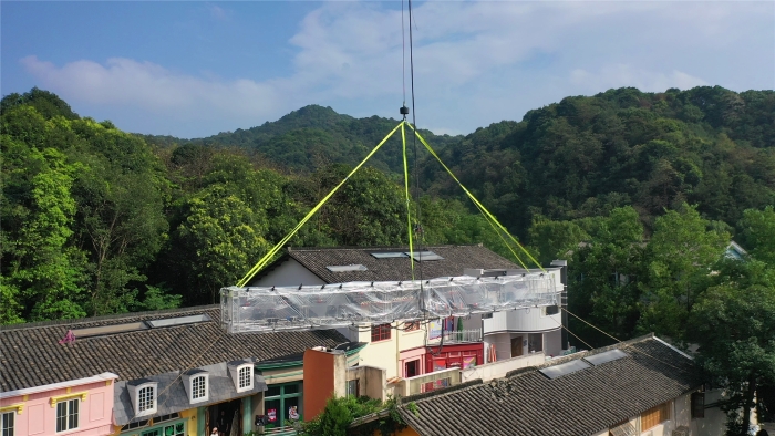 在杭州大清谷影視拍攝基地,一場(chǎng)“靜默式”吊裝正在上演。全球首款四橋八節(jié)臂130噸汽車起重機(jī)——徐工G2代XCT130G8-1,將20米長(zhǎng)、2.5噸重的劇組燈架穩(wěn)穩(wěn)送至跨度46米外的房屋上空。而這一“定格”,就是整整三天。