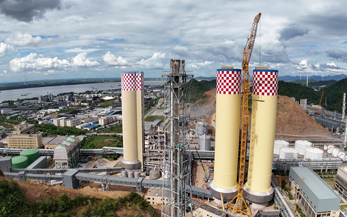 作業(yè)過程中,徐工 XGL3300-220S先將圓形橫梁鋼構提升至130多米高度,越過塔筒,在塔頂區(qū)域通過多次微幅旋轉(zhuǎn)調(diào)整,最終穩(wěn)穩(wěn)下沉,與造粒塔上部預埋支座精準對接。