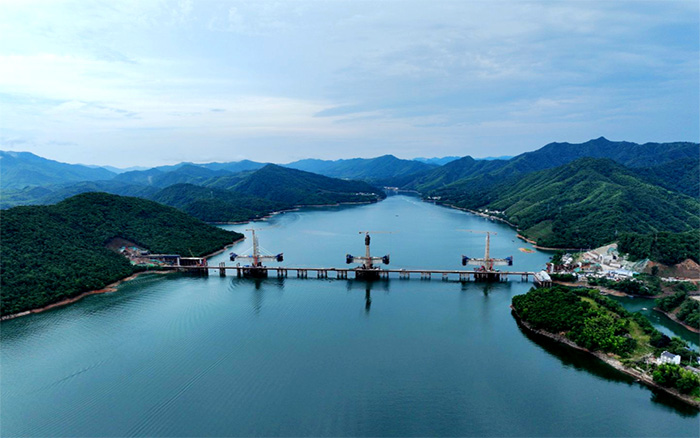 從航拍的空中俯看建設中的太平湖大橋,仿佛看到忙碌的工人們正在彈奏一架特大號的鋼琴,合拍共振,華麗樂章。