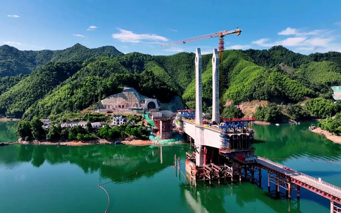 太平湖特大橋作為池黃高鐵全線唯一控制性工程,全長926.1米,采用雙線三塔矮塔斜拉橋,兩個主跨均為228米,是目前國內(nèi)跨度最大的高速鐵路多塔矮塔斜拉橋。