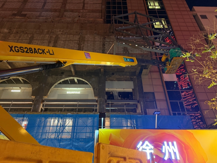 徐工XGS28ACK-Li直臂式高空作業(yè)平臺(tái)環(huán)保靜音,純鋰電動(dòng)力系統(tǒng)實(shí)現(xiàn)零排放、低噪音,讓商場(chǎng)施工期間仍能正常營(yíng)業(yè);緊湊的車身設(shè)計(jì)讓車輛在商場(chǎng)有限空間內(nèi)自如專場(chǎng);臂架精準(zhǔn)定位,使工作籃能夠精準(zhǔn)避開幕墻構(gòu)件,抵達(dá)最佳焊接位置,大幅提升施工效率,獲得現(xiàn)場(chǎng)施工人員一致好評(píng)。