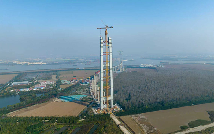 從北航道橋南北錨碇封底,到數(shù)十個(gè)大型鋼塔節(jié)段的精準(zhǔn)吊裝,再到北主塔塔柱主體工程圓滿完工,徐工XGT15000-600S始終以“穩(wěn)扎穩(wěn)打、精工致微”的卓越表現(xiàn),持續(xù)提升主塔建設(shè)效率與作業(yè)可靠性,見證著這座世界級(jí)大橋主塔節(jié)節(jié)攀升。