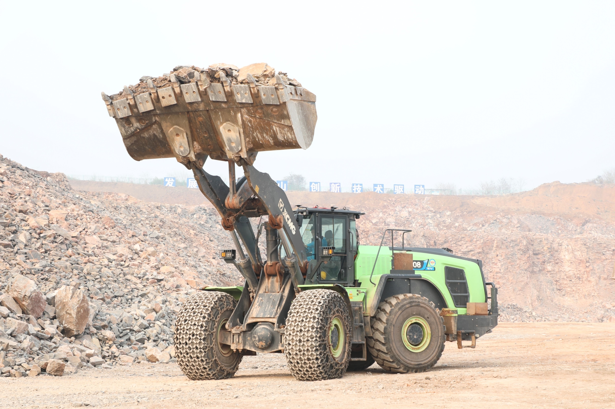 某水泥廠石灰石礦山轉(zhuǎn)運作業(yè)現(xiàn)場,徐工XC9108-EV揮舞巨臂鏟裝石料,以超出預(yù)期的綜合性能優(yōu)勢獲得青睞。
