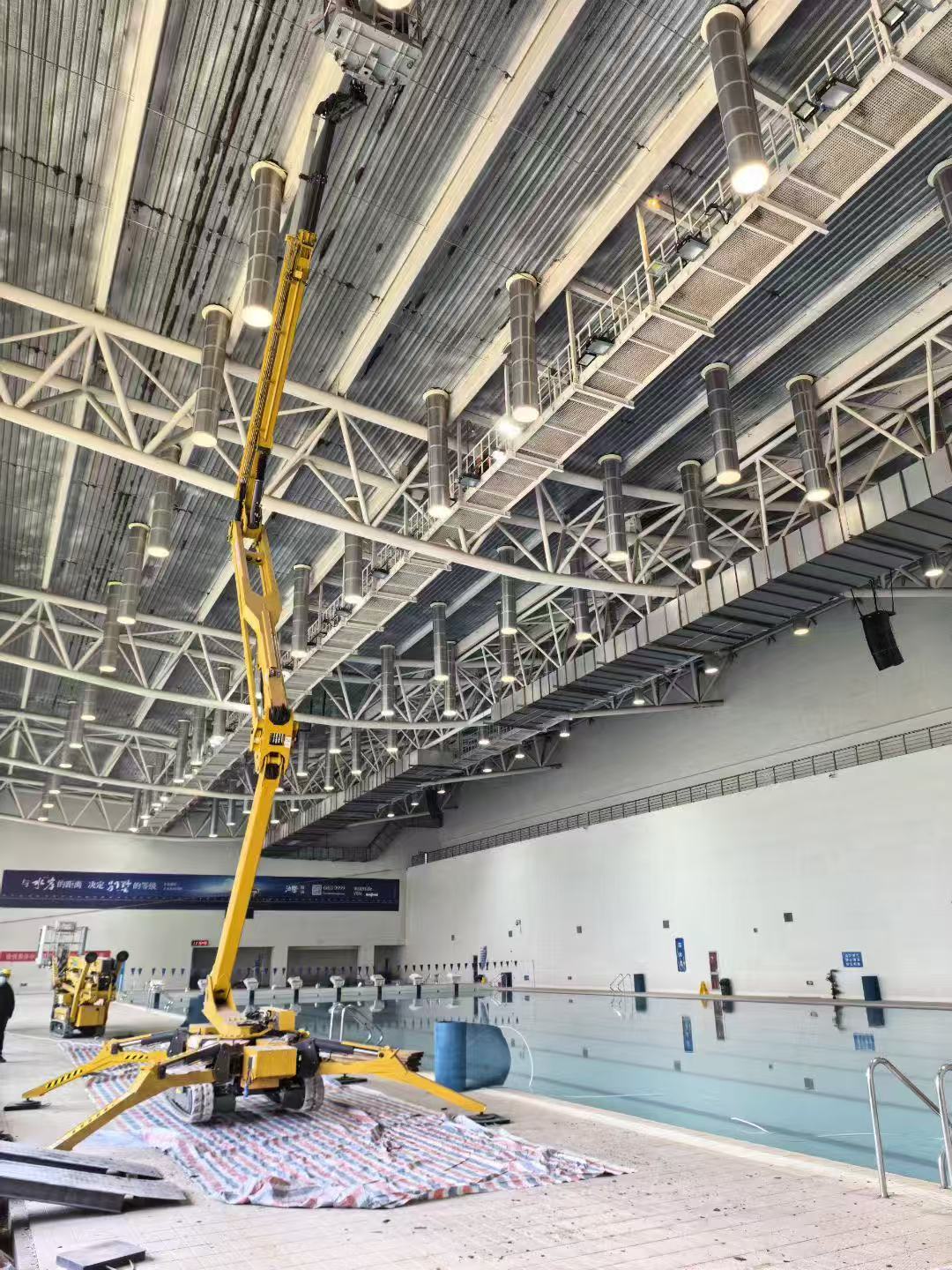該設(shè)備采用履帶式底盤,自重4.6噸,接地比壓小,完美適配泳池低承重及地面保護(hù)作業(yè);車寬僅0.99m,可靈活穿梭狹窄通道,通行無阻;工作幅度可達(dá)15m,無需頻繁起降,省時高效,到場即可開工,此次施工僅配置3臺設(shè)備和10名操作人員,便能高效推進(jìn)任務(wù),在保障工程質(zhì)量的同時顯著縮短了工期,實(shí)現(xiàn)了效率與成本的雙重優(yōu)化。