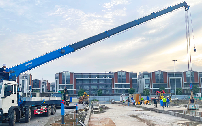 夜間設(shè)備檢修場景,工作燈自動亮起照亮作業(yè)區(qū)域。自動收鉤裝置省去繁瑣準(zhǔn)備步驟,吊鉤穩(wěn)穩(wěn)固定不晃動;雙回轉(zhuǎn)減速機(jī)自鎖性能出色,吊臂懸停精準(zhǔn),微動作控制讓精密部件平穩(wěn)就位。雙側(cè)爬梯方便操作員快速上下設(shè)備,點(diǎn)熄火功能一鍵啟停,大幅縮短作業(yè)間隙,助力檢修高效收尾。